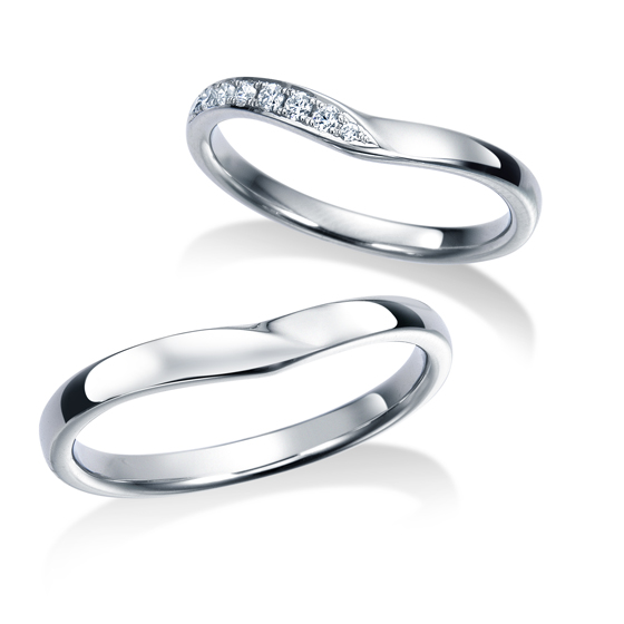 指に沿うカーヴラインのマリッジリング(結婚指輪)。