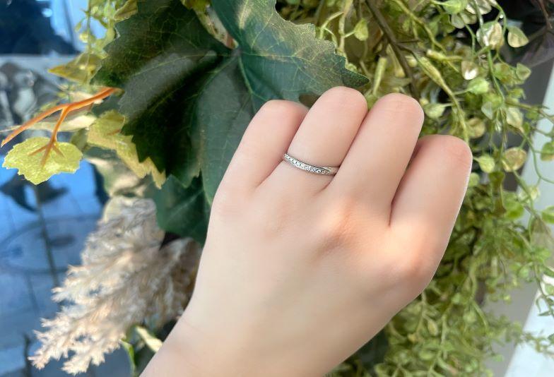 繊細なデザインが特徴ですが、結婚指輪らしさや高級感も兼ね備えたリングです。