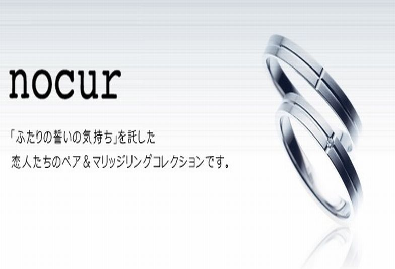 nocur(ノクル)は、フランス語のnos=「わたしたちの」 coeur=「ハート」という意味から生まれましたブライダルジュエリーブランドです。「ふたりの誓いの気持ち」を託した恋人たちのペア&マリッジリングコレクションです。一本¥66,000均一の定額制ブライダルジュエリーブランドです。価格も良心的で価格・つくり・スピードすべてにこだわりを注ぎ込んで作られたブランドです。