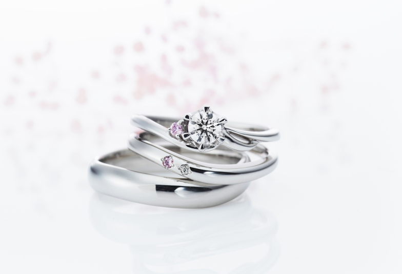 ピンクダピイヤが輝く大人かわいい結婚指輪