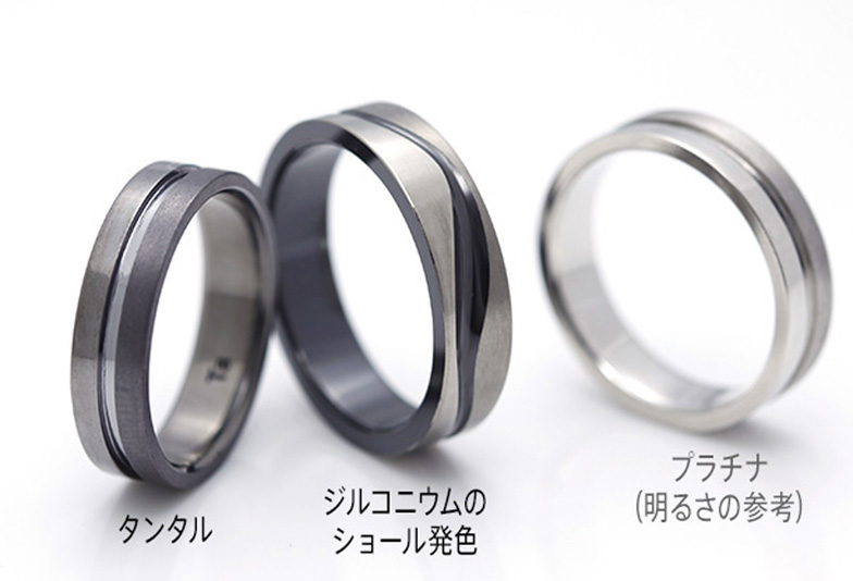 色と質感・・・青みがかったマットなダークグレーが特徴。光の反射率が全金属の中で最も低く、吸い込まれるような深い黒さが魅力です。