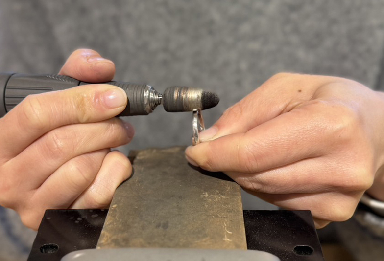 サイズ調整したリングを今度は、削って指輪の角をお好みの丸さにしたり、指輪の内側を内甲丸にして着け心地を良くします。最後に磨きをかけてピカピカの指輪にしていただきます。