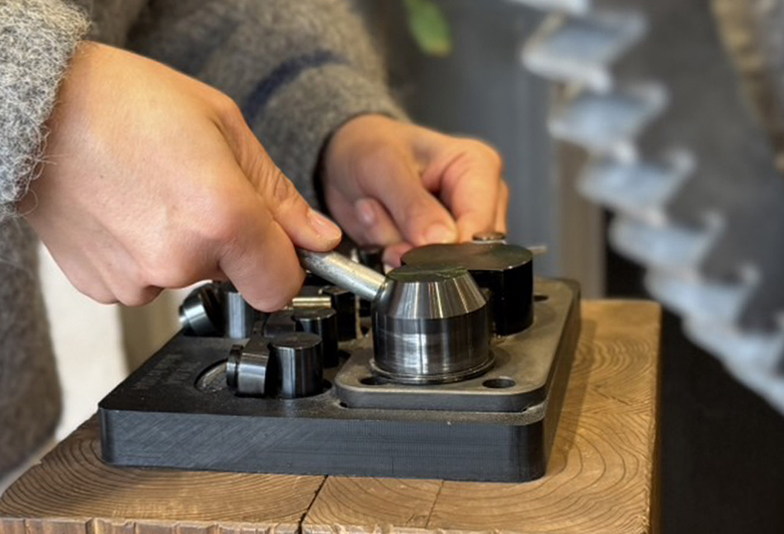 手作り指輪の醍醐味でもある指輪の表面にお好みのテクスチャで加工します。テクスチャによって叩いたり削ったりと作業はそれぞれ。世界にひとつだけの指輪を作ることが出来ます。