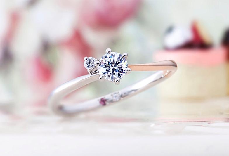 いろとりどりの想いを込めた宝箱 Coffret Couleur。ちょこんとセットされたメレダイヤモンドがかわいい婚約指輪。