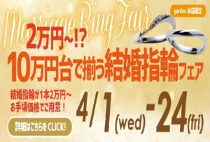 地金高が続く今、「結婚指輪ってやっぱり高いよね…」と不安に思っていませんか?でも大丈夫!”安いからこれ”ではなく、”これがいい!”「予算は重視だけど、ちゃんと気に入る結婚指輪を選びたい!」を叶えます。garden本店では … 続きを読む 【南大阪・高石市】関西ではgardenだけ⁉10万円で揃う結婚指輪が100通り以上もの組み合わせ!