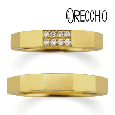 ゴールドの角ダイヤだ入った珍しい結婚指輪に決定!