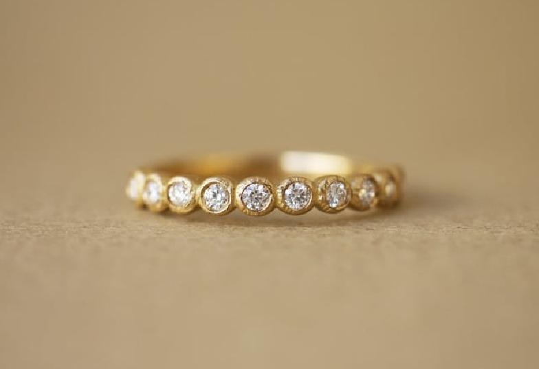 女性様なら誰しもが憧れるキラキラの華やかなリングのエタニティリング(ハーフエタニティ・フルエタニティ)は大阪梅田で大人気なリングです。リング全体にダイヤモンドがぐるりと埋め込まれているので手元を華やか・エレガントに魅せてくれます。エタニティリングはダイヤモンドが途切れることなく敷き詰められている様子が「永遠」を思わせることから「永遠=Eternity エタニティリング」と呼ばれるようになりました。結婚指輪はもちろん、重ね着けとして、婚約指輪として身に着けられる方も多いです。そんなエタニティリングを数種類ご紹介致します。
