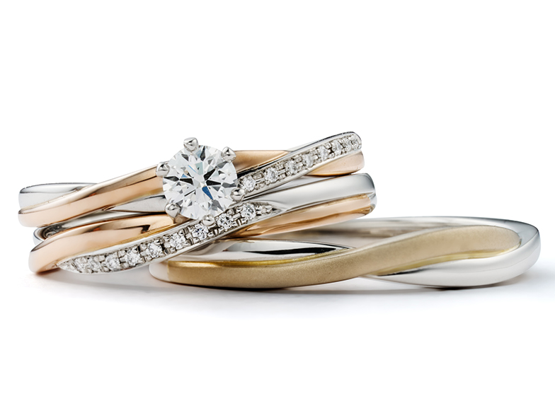 「いつも一緒」は、は異なる2色の素材が、織りなす綾の様なコンビネーションで二人の想いが紡がれる姿を表現したマリッジリング。エンゲージリングは、これからの人生を共に歩む決意に寄り添います。