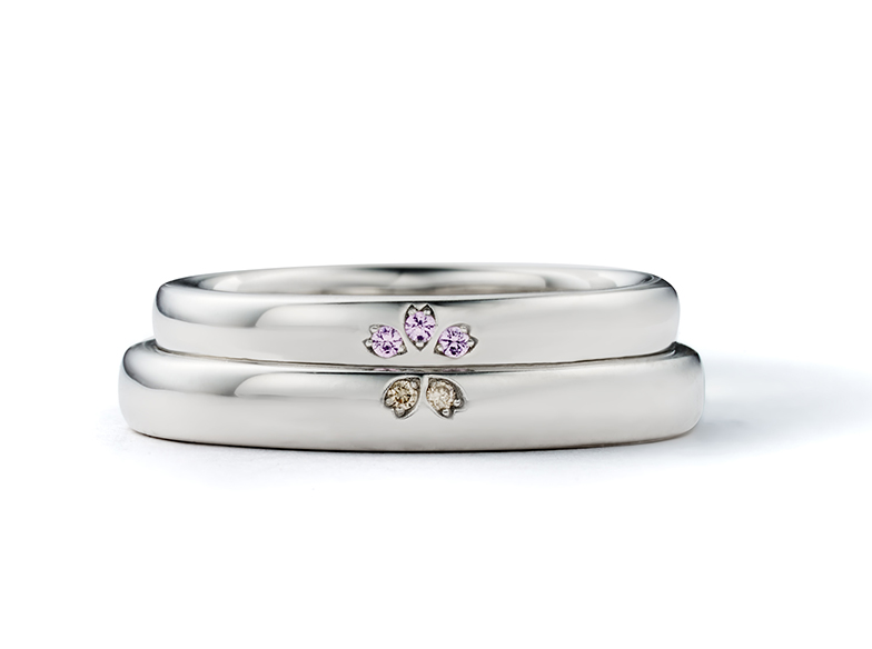 そんな情景をデザインに込めました。一つだけでは見えない美しさが、ふたりの絆によって完成する様は、これから共に歩む人生そのものを象徴しています。桜の花に託された想いと、重なり合うかたちが、お互いを思いやる心に語りかける詩情豊かなリングです。