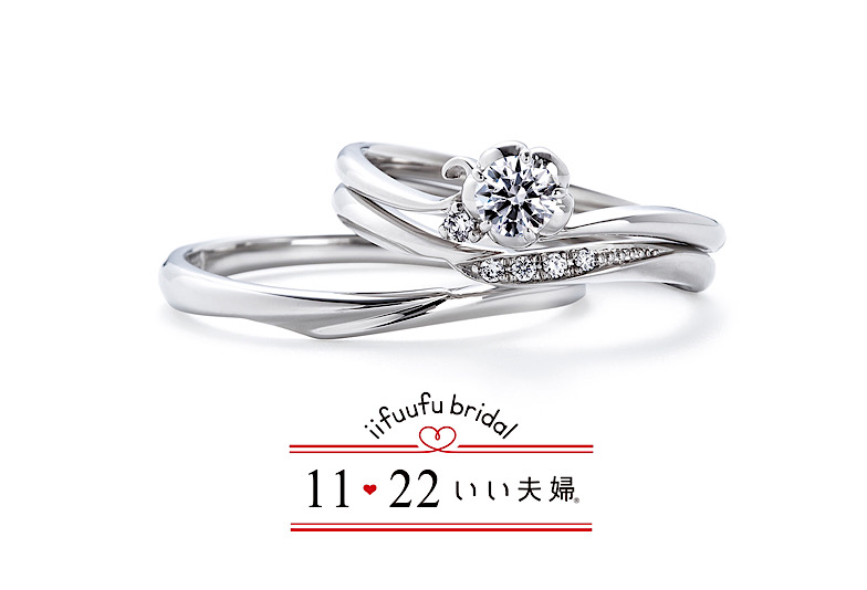 ちょっぴりスイートな感じのエンゲージリングがシンプルなマリッジリングとの組み合わせに華をそえます。