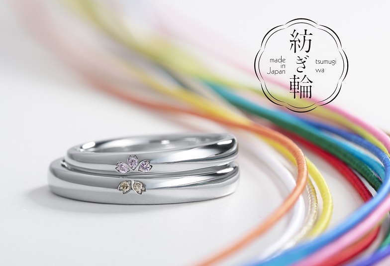 お互いのリングを重ね合わせると、浮かび上がる桜が他にないデザイン。