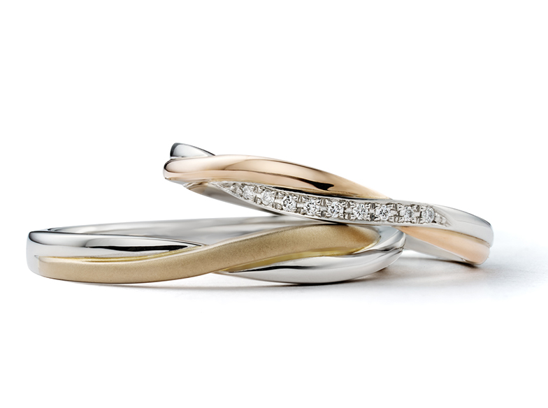 いつも一緒は、異なる2色の素材が織りなす綾のようなコンビネーションで、二人の想いが紡がれる姿を表現したマリッジリングです。