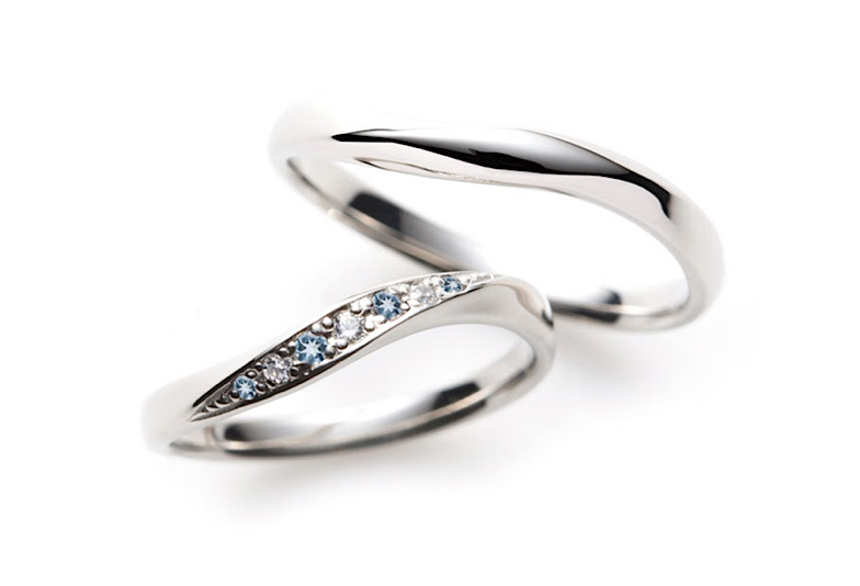 今回はアクアマリンを施した3月の結婚指輪をご紹介いたします。