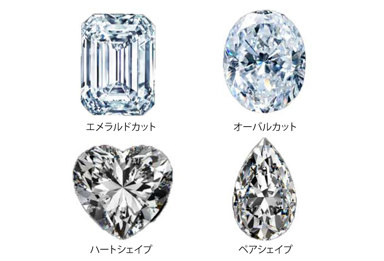 ファンシーカットとは、一般的な丸型(ラウンドブリリアントカット)以外の形にカットされたダイヤモンドを指します。ハート、ペアシェイプ(雫形)、オーバル(楕円)、エメラルド、マーキスなど、その種類は多岐にわたります。ラウンドカットが対称性と輝きの強さを重視しているのに対し、ファンシーカットは形の美しさや個性の表現に重点を置いています。形の違いによって、光の表情や印象が変化し、ひとつとして同じ輝きは存在しません。