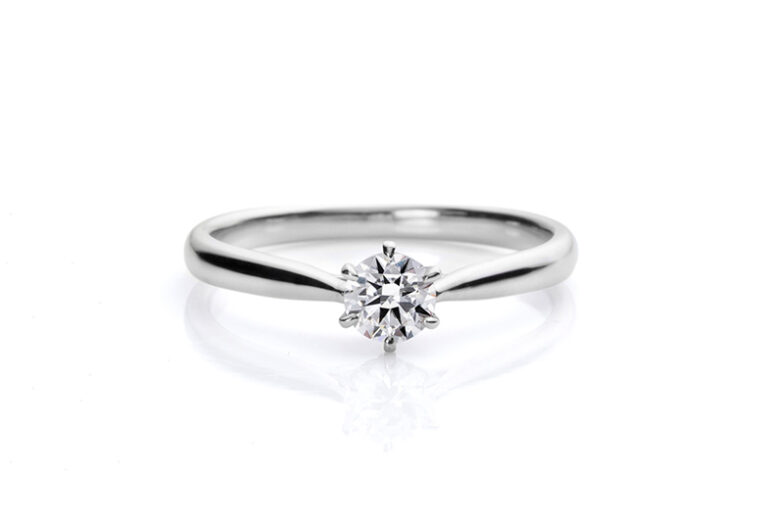 もっとも人気の高い王道デザイン。ダイヤをしっかり支える6本爪は、光をたっぷり取り込み、手元全体を明るく見せてくれます。結婚指輪との重ね着けもしやすく、迷った時の“間違いない一本”としておすすめです。
