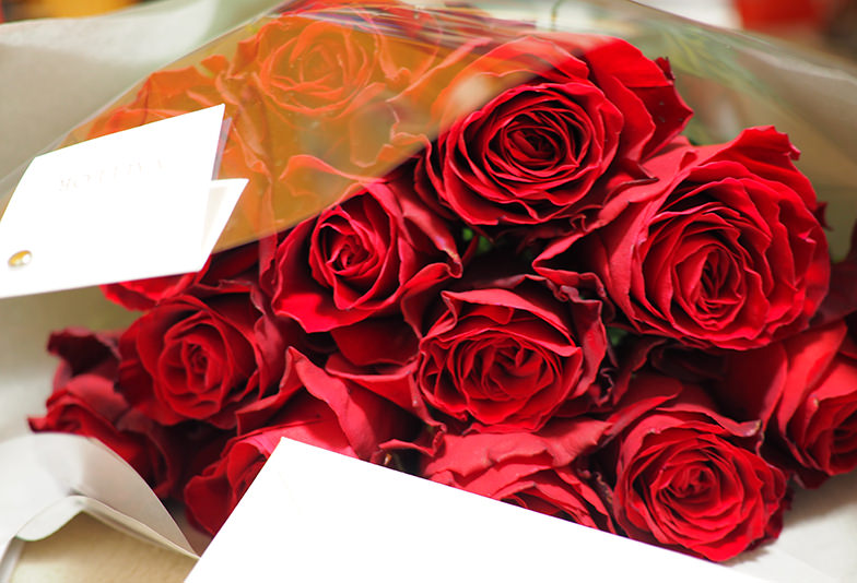 赤いバラの花束はプロポーズの定番。本数によって意味が異なるため、想いを込めた数を選ぶのもおすすめです。