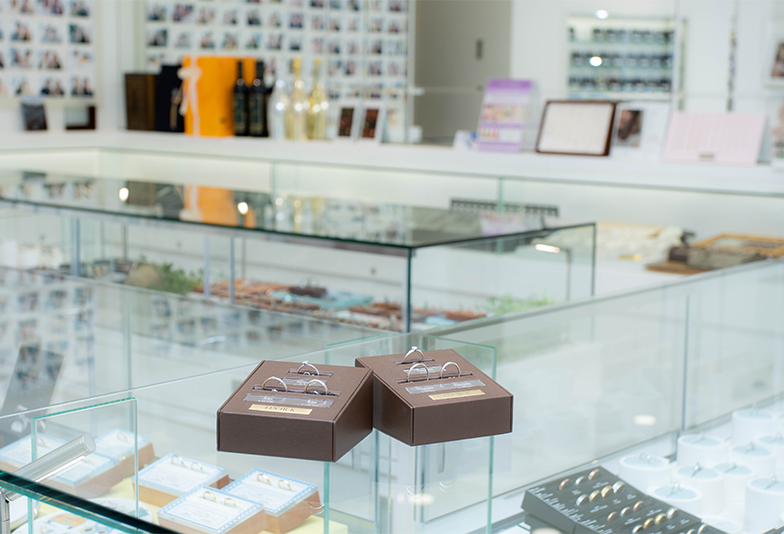 → ペアで10万円台の指輪も豊富にあり、予算に合わせた提案力が魅力。