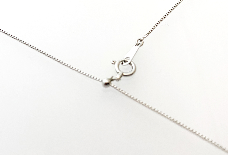 お洋服に合わせてチェーンの長さが変えられるフリーアジャスターが付いています。45cmと長めのお作りなのでニットの上からも身に着けて頂けます。