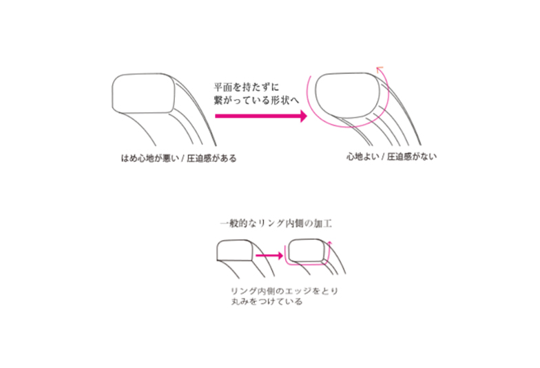 職人の高い技術でダイヤモンドをしっかりと留め、