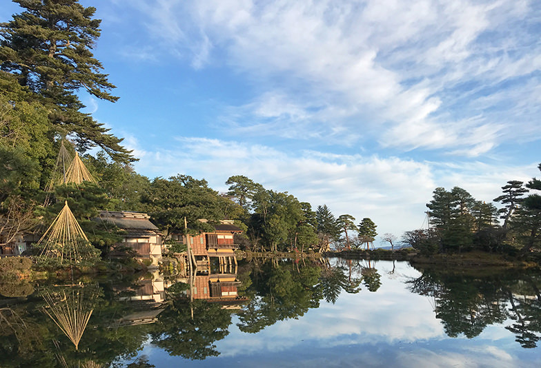 水戸偕楽園(かいらくえん)、岡山後楽園(こうらくえん)とならぶ日本三名園の一つ、金沢市中心部に位置する兼六園。江戸時代の代表的な大名庭園として加賀歴代藩主により、長い歳月をかけて形づくられてきました。土地の広さを最大に活かして大きな池や茶屋を点在させ庭全体を遊覧でき四季折々の美しさを楽しめる庭園として、多くの県民や世界各国の観光客に親しまれています。たくさんの樹木が植えられており、季節ごとにその色合いを変化させます。時期によって変わる景色を楽しみつつ、まったりとくつろぎなら二人で散策してみるのもいいかもしれません。