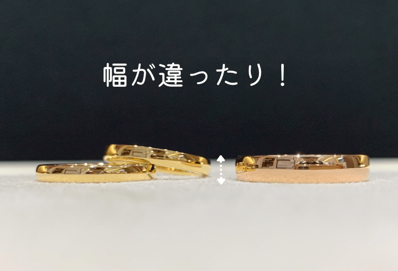 ぱっと見似たようなデザインでも、よくよく見ると厚みや幅が違うことがあります。