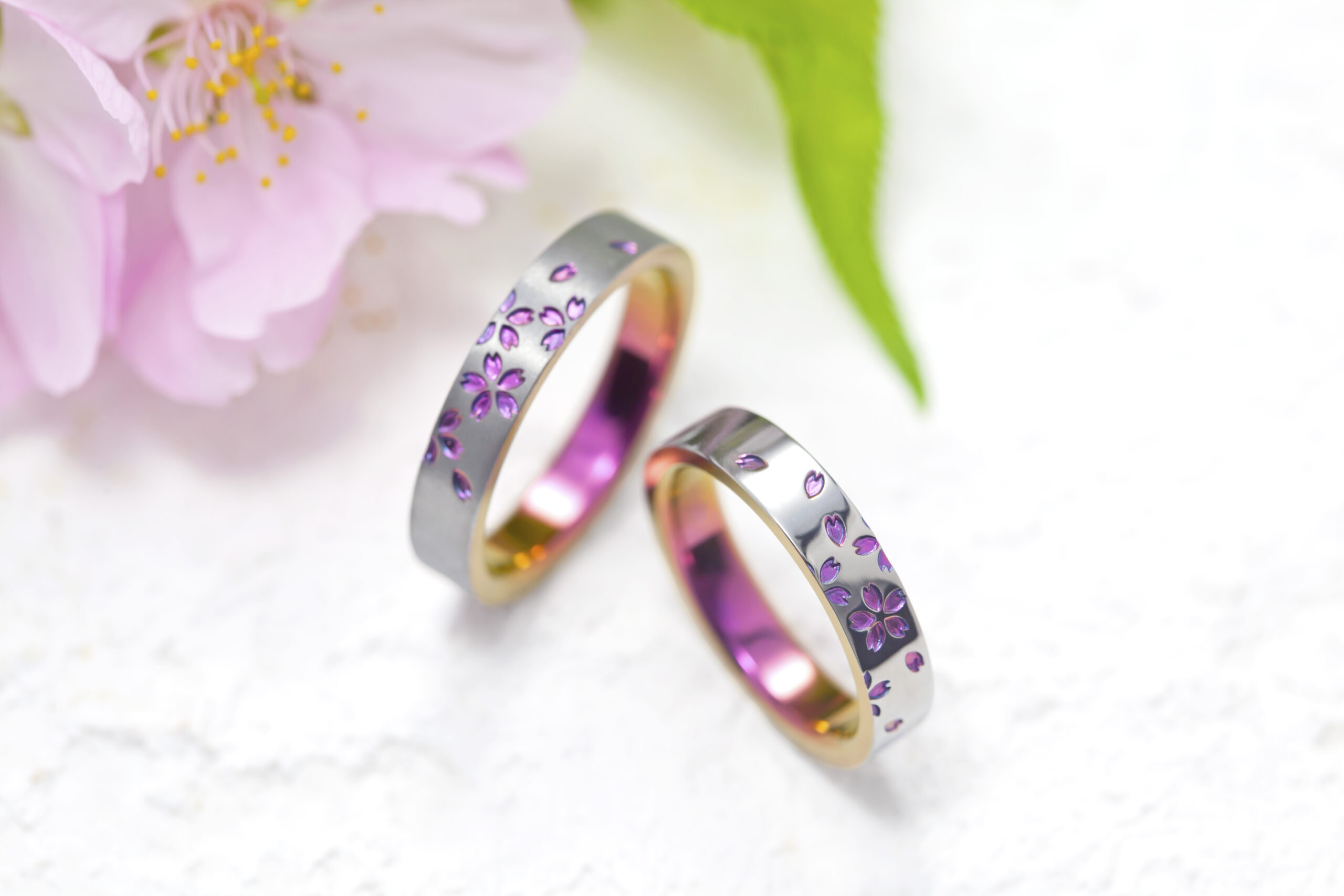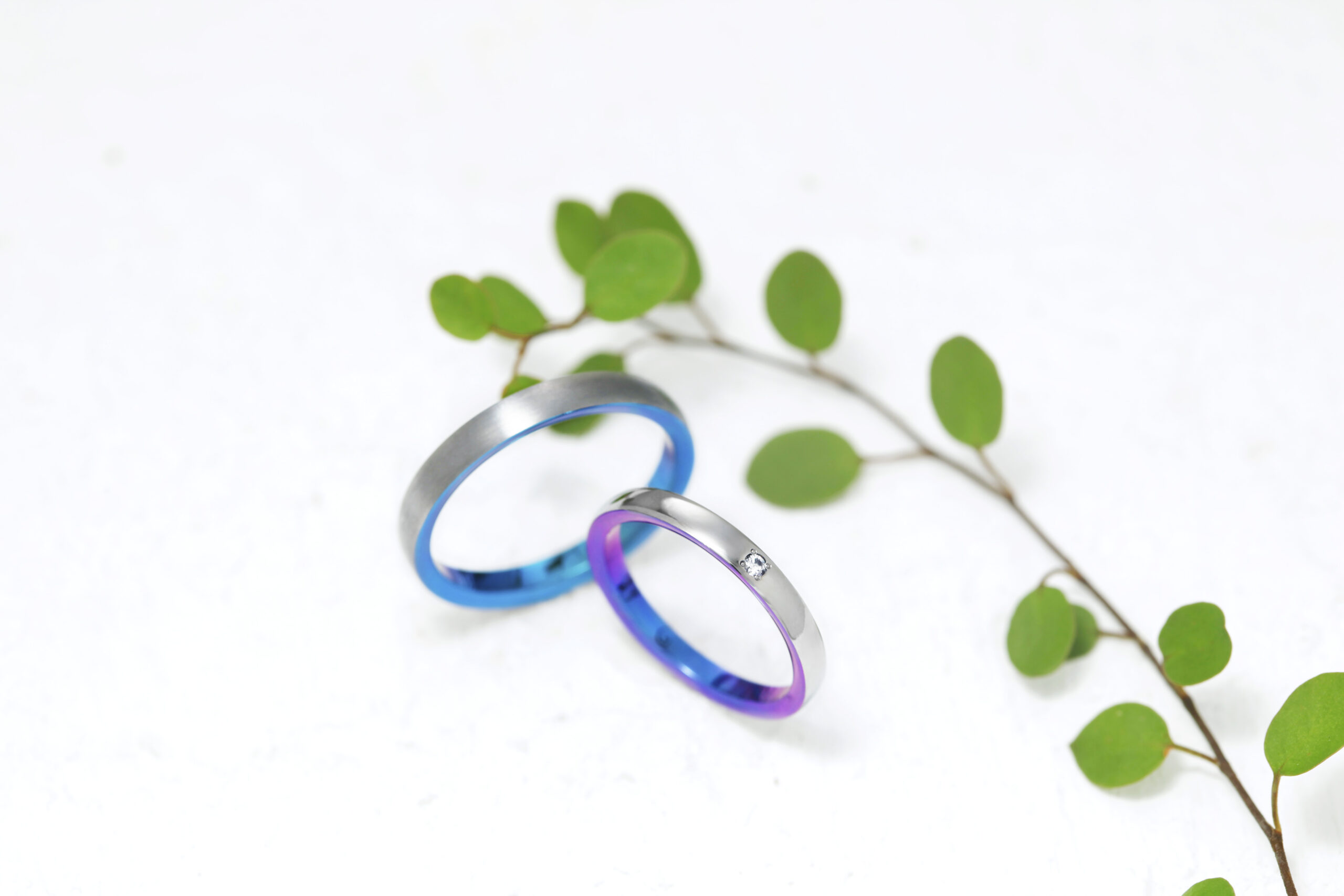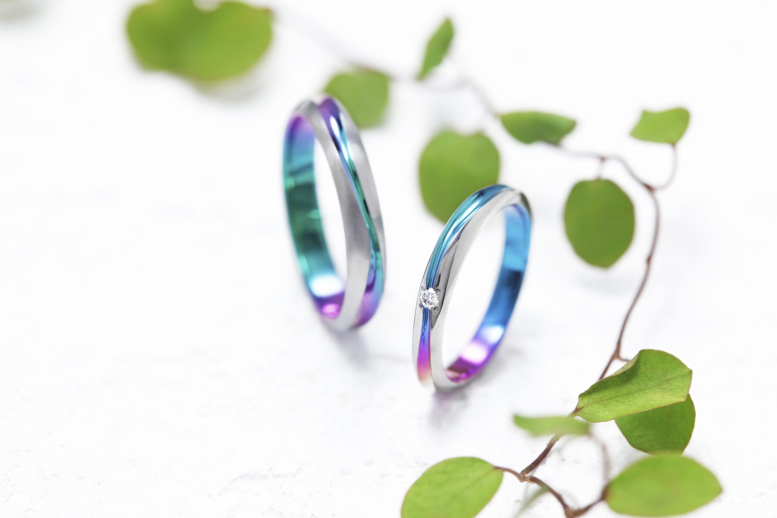 指輪への発色は酸化皮膜による光の屈折であり、紫外線や経年による劣化はありません。しかし着用していると、指との摩擦により膜が薄くなってしまい、色の変化が起こる可能性があります。ジルコニウムでは、他の素材よりも摩擦に強く、長い時間好きなカラーを楽しむことが可能。