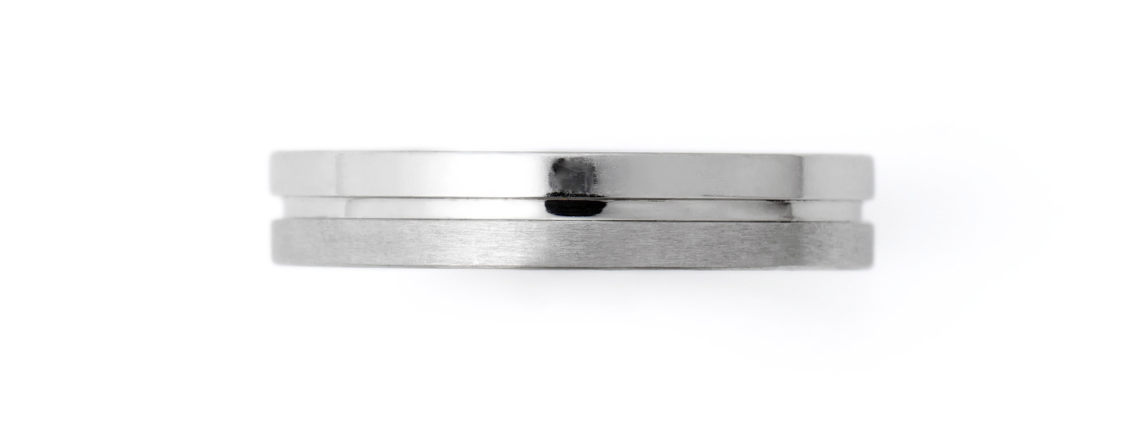 素材そのものは白色(シルバー色)の金属ですが、プラチナに比べて少しグレー味があり落ち着いた印象になります。