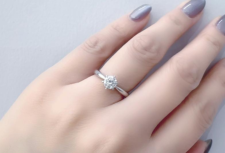 昔から愛され続けている王道のソリティアデザイン。0.6ctのダイヤモンドは存在感があり力強く輝きます。ダイヤモンドを際立たせたいなら、シンプルデザイン×ラージストーンを選ぶのがおすすめです。