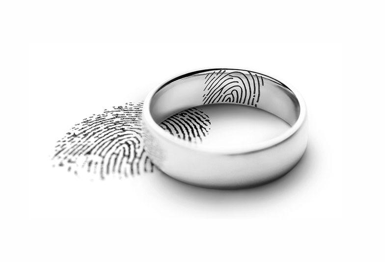 文字刻印に加えて、最先端の技術を用いた特別なレーザー刻印が可能です。通常のフォントだけでなく手書きの文字も刻印できます。また、お互いの指紋を指輪の内側に刻印できる「フィンガー刻印」やおふたりの指紋で「ハートフィンガー刻印」も出来ます。ふたりだけの世界に一つだけの結婚指輪が出来上がります。
