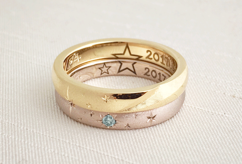 同じブランドの中から、それぞれ好きなデザインの指輪を選ぶことで