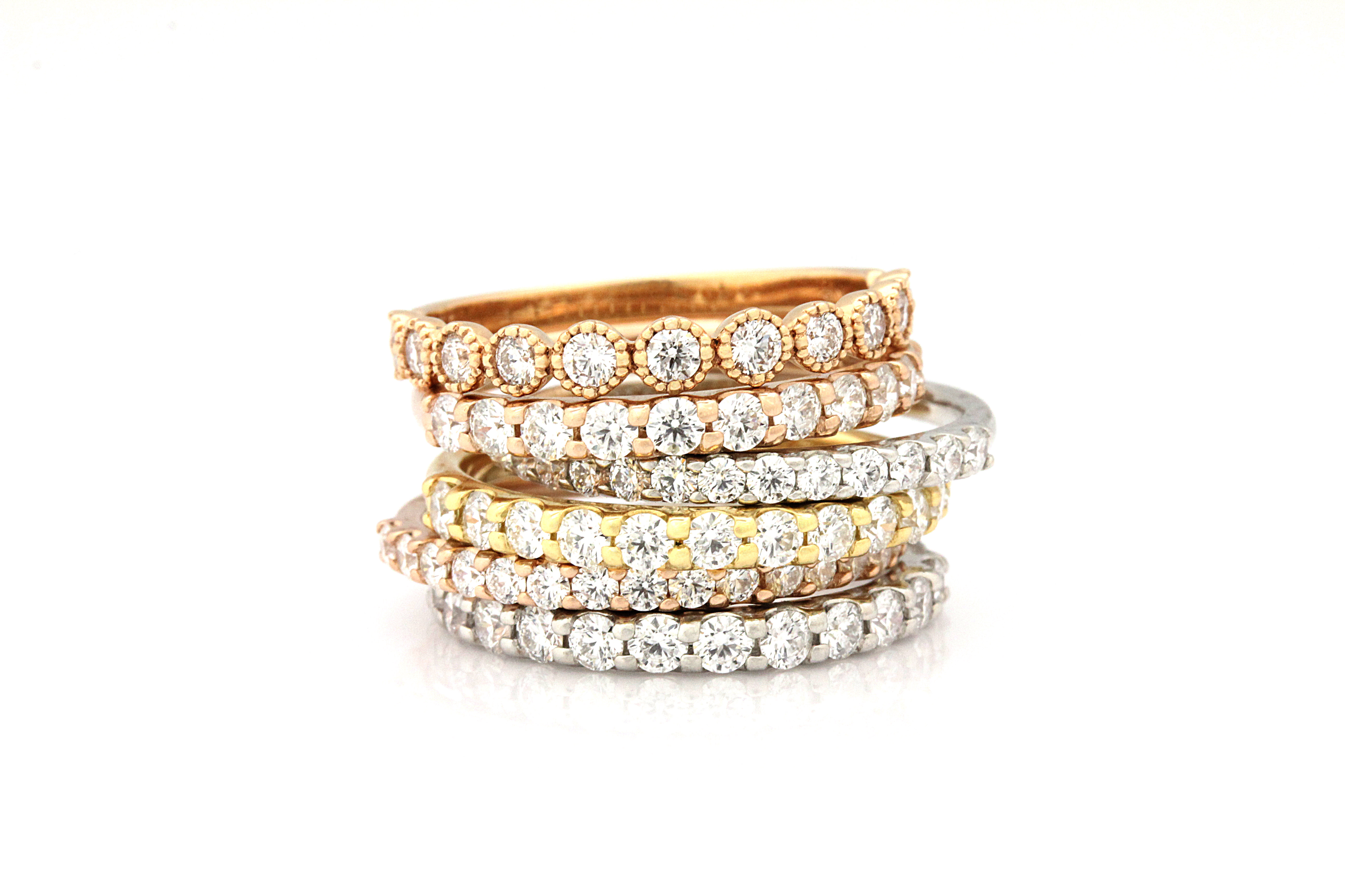 エタニティリングとは「エタニティリング」とは結婚記念日や子供が生まれた記念に夫から妻に贈られるリング。「永遠に変わる事のない気持ち=エタニティ」ということで、現在では結婚指輪としても人気が有ります。エタニティリングには2種類あります。