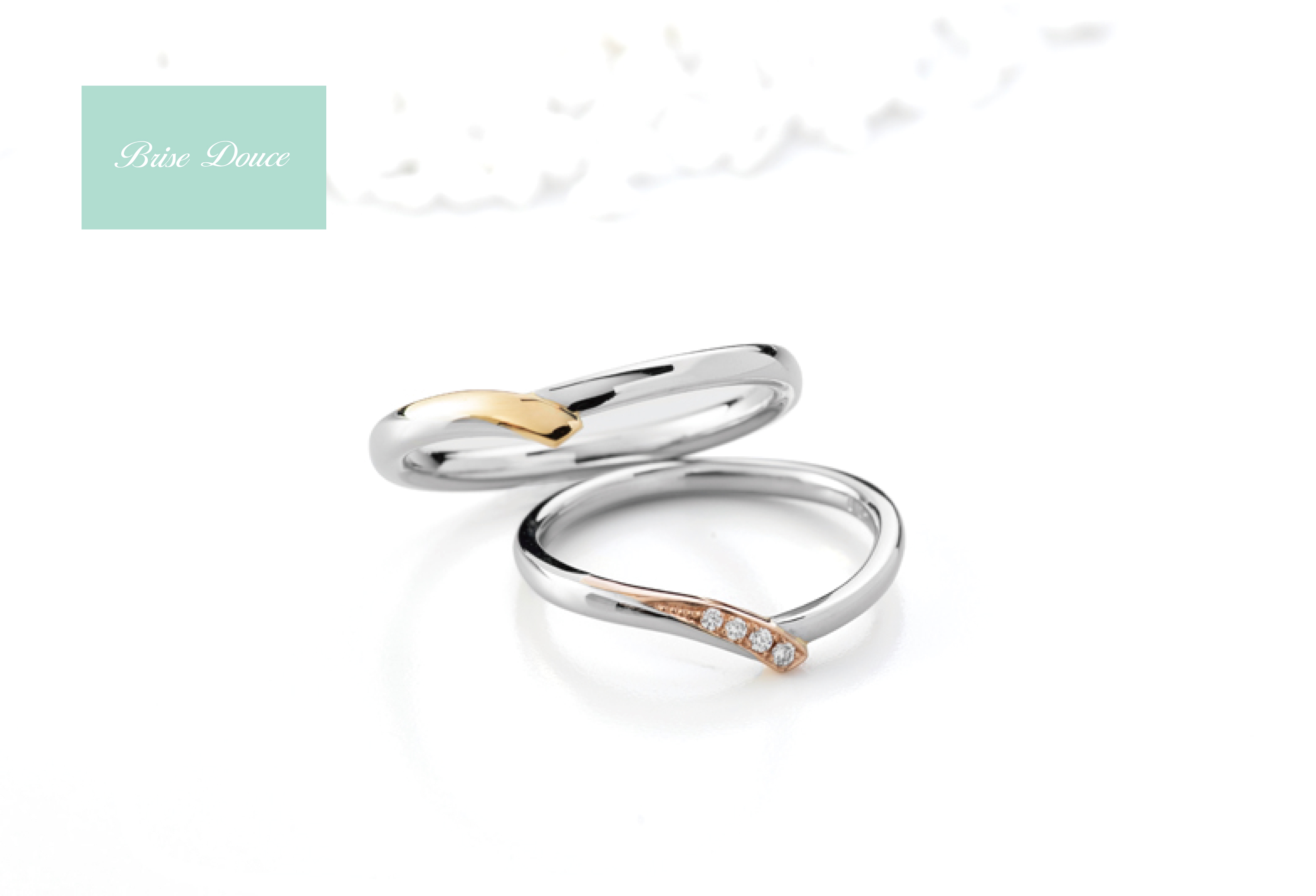 Brise Douceは結婚指輪全てがコンビネーションデザインのブランドです。こちらの結婚指輪はレディースもメンズも両方コンビネーションなのでお揃い感が嬉しいですよね!