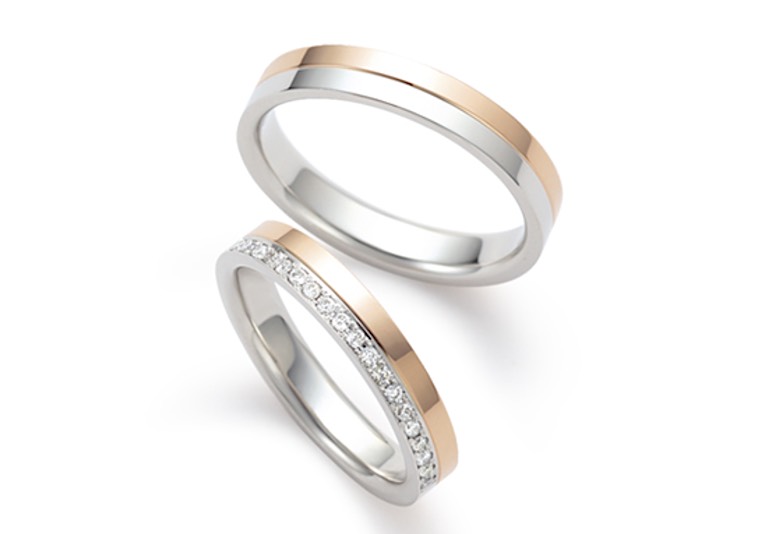 流れる様なダイヤモンドが美しいデザインの結婚指輪