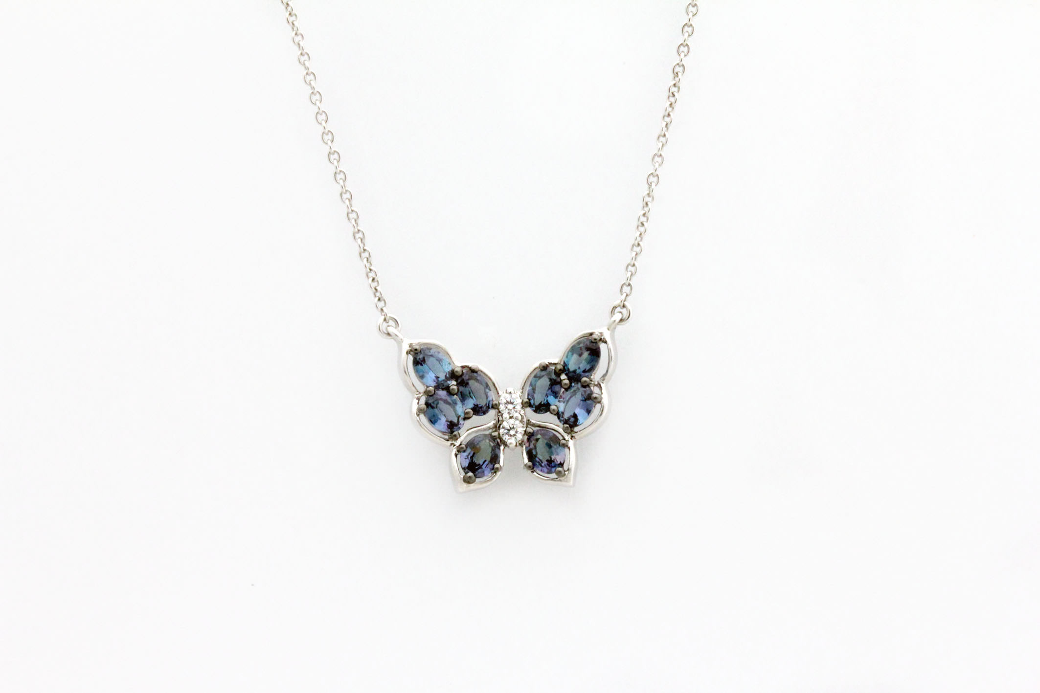 アレキサンドライトは太陽光の下ではグリーン、人口光の元ではルビーのような赤色にかがやく大変珍しい宝石です。アレキサンドライトの色を変化させる性質は、微量のクロム含有による珍しい光吸収特性に由来しています。