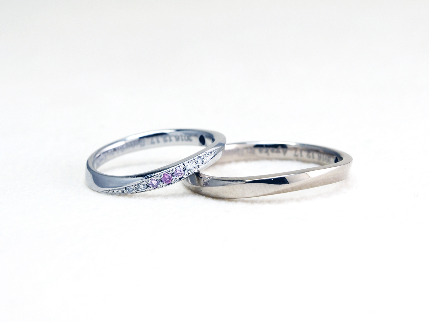 【久留米市】結婚指輪をピンクダイアモンドでキュートなアレンジを