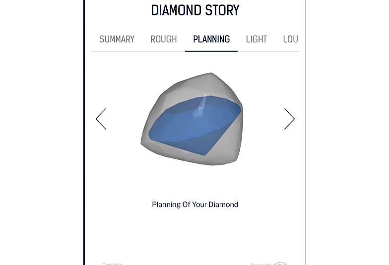 ダイヤモンドの原石からプランニング、磨かれたダイヤの3Dモデルまでオンラインで確認できます。