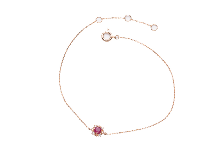 中心部に留められたルビーが鮮やかなブレスレットは