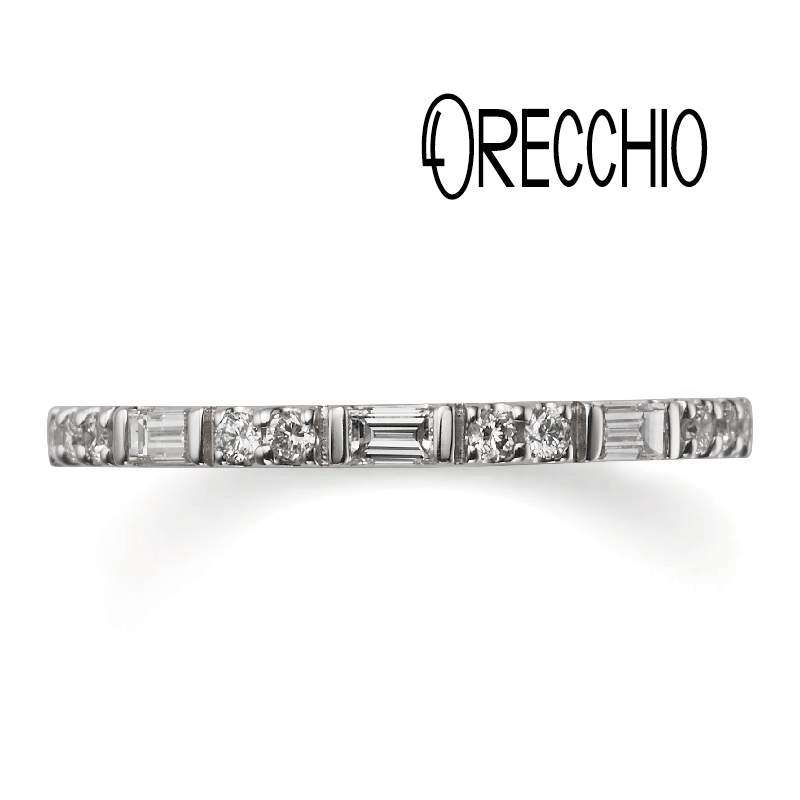 は半周ダイヤモンドが埋め込まれたデザインのリングです。地金の部分が半分あるので、サイズ直しが簡単。価格もリーズナブルなのが嬉しいポイントです。