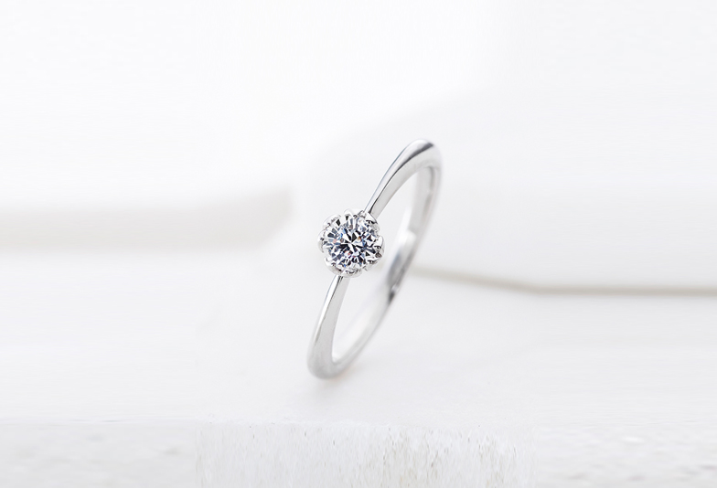 「和」をイメージしたNew ブランドが早くも人気です。ダイヤモンドを包み込むようなツメの形が特徴的で、お花のような印象があります。シンプルだけど華やかさが欲しい方におすすめです。