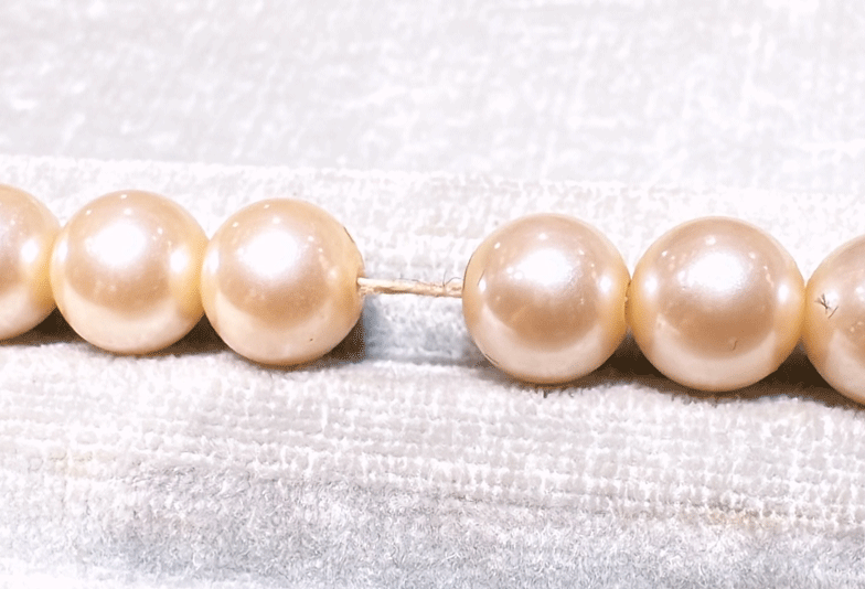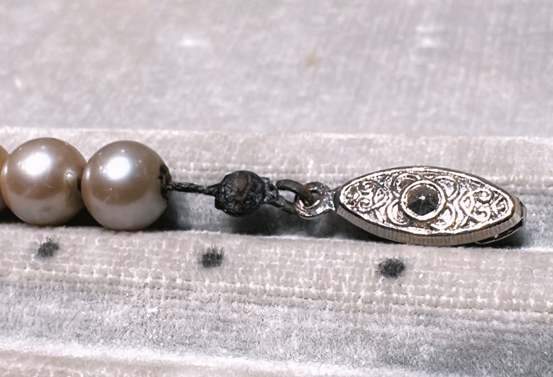 いつ糸替えがされたか不明な場合、糸がかなり劣化していると考えるべきです。真珠と真珠の間に珠1個分ほどの隙間が見えるようなら、それは糸が伸びてしまっているサインであり、すぐにでも糸替え(またはワイヤー交換)が必要です。専門家による糸替えは、真珠の穴周りのクリーニングも兼ねることが多いため、非常に重要なメンテナンスです。