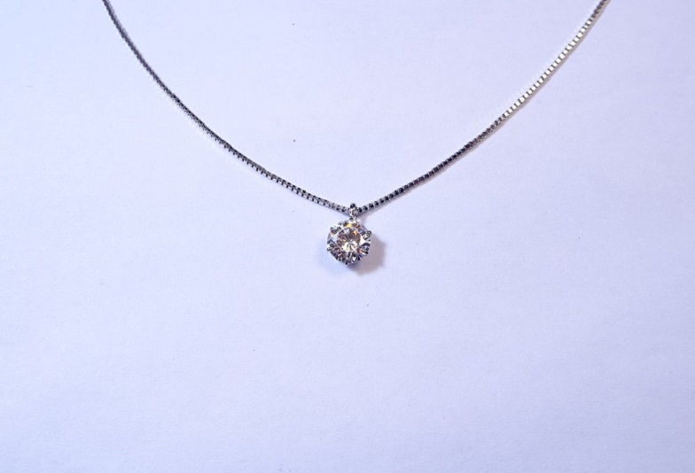 最近は指輪をネックレスにジュエリーリフォームされる方が増えています。家にある使ってないチェーンがあればもちろん使えますし、指輪にジュエリーリフォームするよりもかなりリーズナブルになります。当店1番人気の6本爪のプチネックレス。