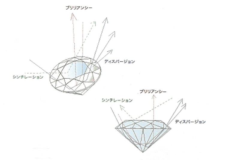 これが〈ブリリアンシー〉またはブライトネスと呼ばれるダイヤモンドの”白い光”です。