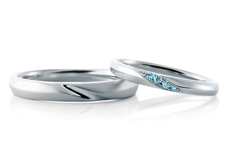 アイスブルーダイヤモンドが魅力的なご結婚指輪
