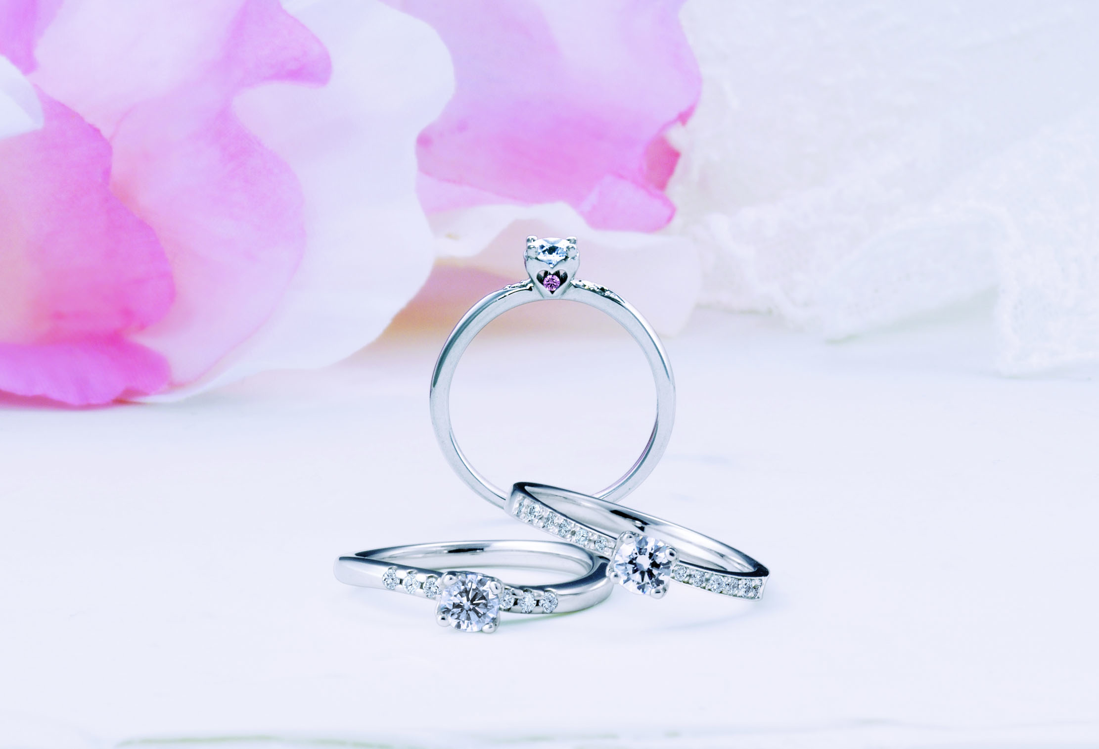 一生に一度の婚約指輪・結婚指輪に、希少価値の高い「天然のピンクダイヤモンド」をあしらって、永遠の愛を誓うのはいかがでしょうか?