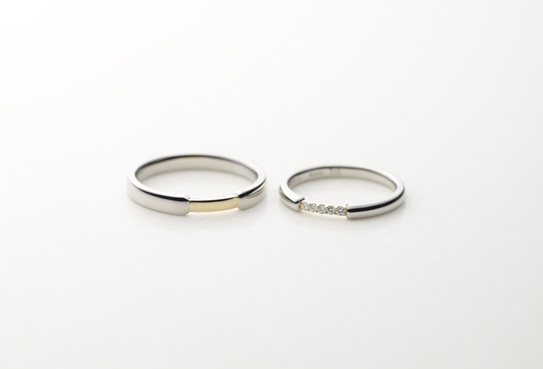 心をつなぎ、縁を結ぶ 世界でたったひとつの架け橋。二人の夢の懸け橋をイメージした結婚指輪(マリッジリング)。センターのゴールドが目を引く印象的なデザインながら、素材のコンビネーションでシンプルにも着けられる。