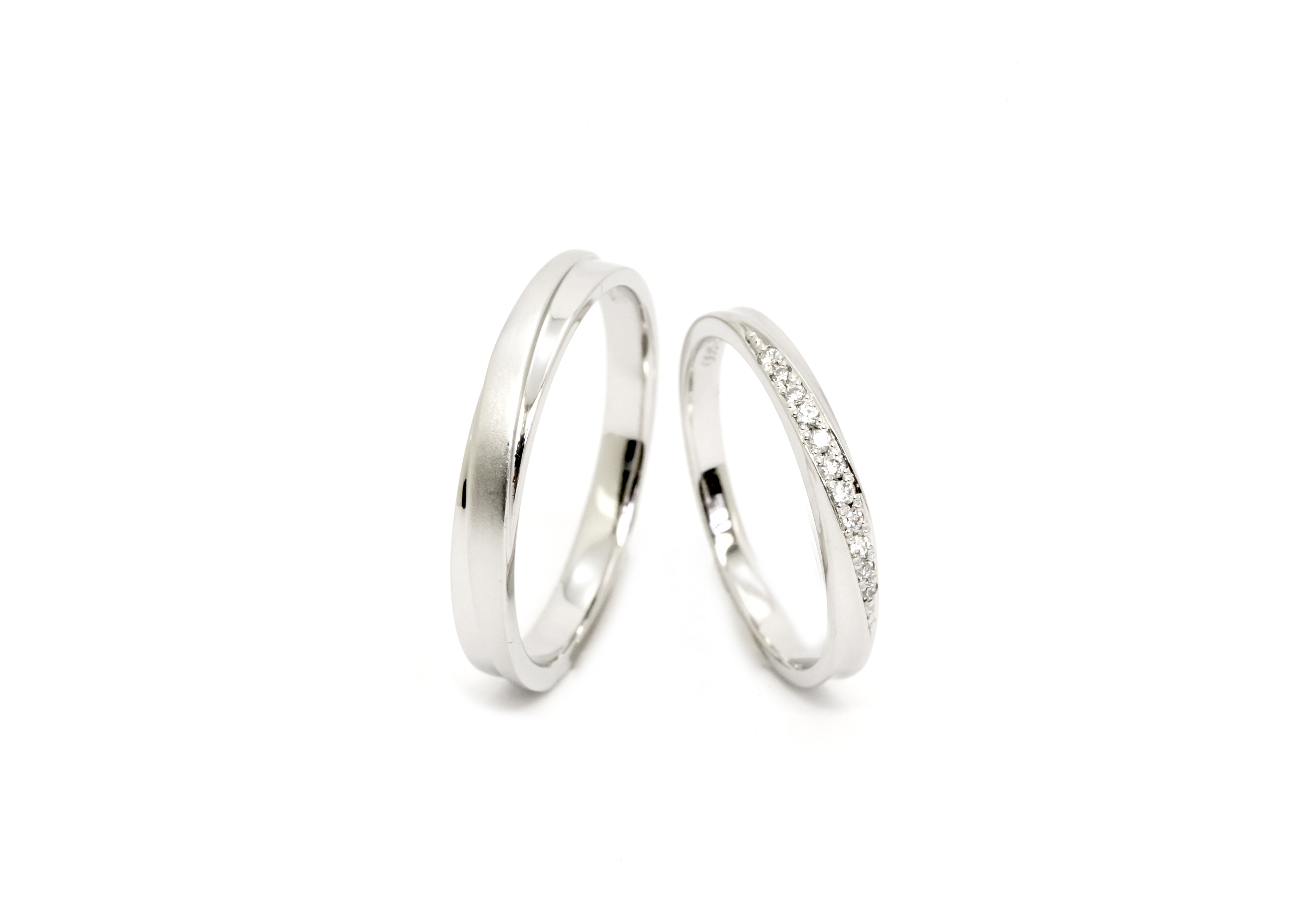 形はストレートで斜めにラインが入りシャープな感じに仕上げていますL’sは斜めのラインにダイヤモンドを敷き詰めシャープな中にも女性らしさを添えています。オリジナルなので素材を変えたり艶消しにしたりとアレンジもできるので楽しみと選択の幅も広がるのも嬉しいですね。