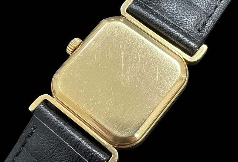 アール・デコ様式のエレガンス: レベルソの最大の特徴は、直線的で端正なレクタンギュラーケース(長方形)に施されたゴドロン装飾(ケース上下の水平な三本の線)です。これは1930年代に流行したアール・デコ様式を反映しており、古典的でありながらもモダンな印象を与えます。