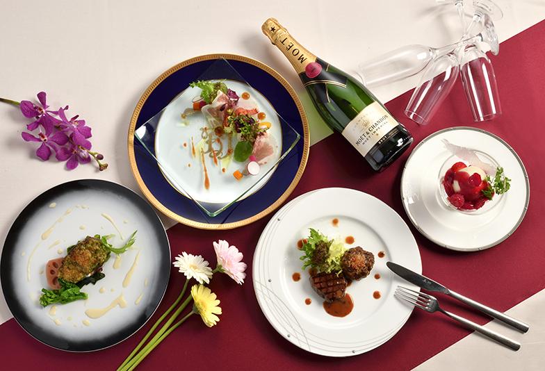 地元の新鮮な食材を使用した和と洋を融合させたお料理は口コミでも大好評です。彩りや盛り付け、器にもこだわった逸品でゲストの皆様をおもてなしできます。
